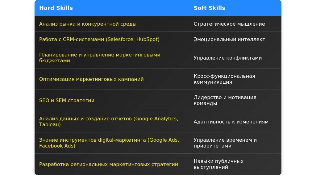 До: "Навыки маркетинга, работа в команде, аналитическое мышление."