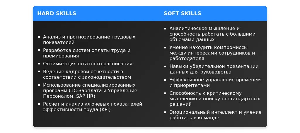 После адаптации: "Знание трудового законодательства, опыт работы в команде, аналитическое мышление."