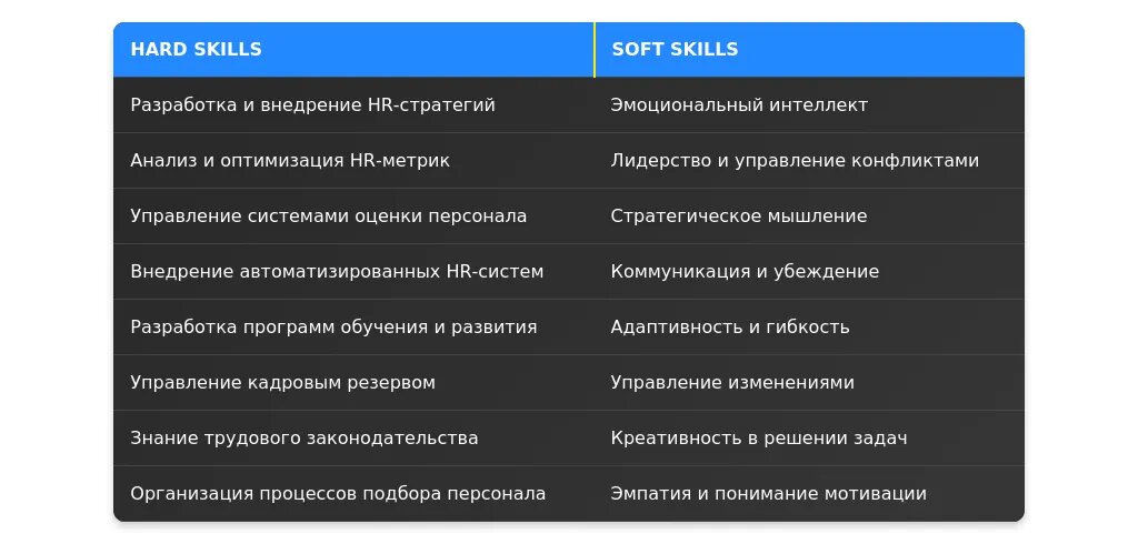 - Адаптивность: успешно внедрил новую HR-систему в условиях ограниченных ресурсов.