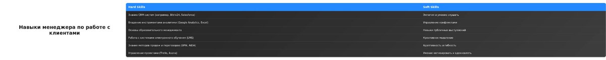 Пример 5: "Знание образовательных стандартов и требований" — специфическое требование для учебных центров, которое стоит выделить.