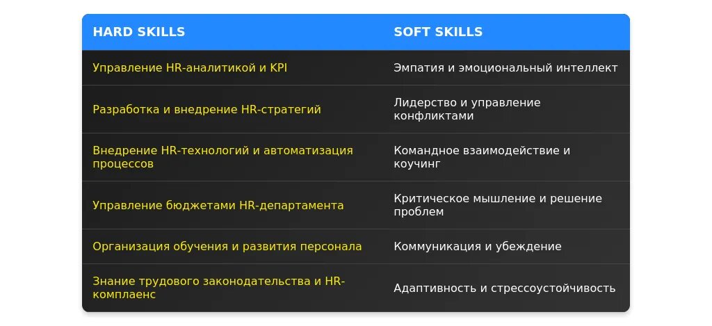 - Перечисление навыков, не релевантных для HR.