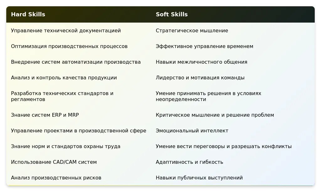 После: Знание современных технологий производства, включая автоматизацию и цифровизацию.