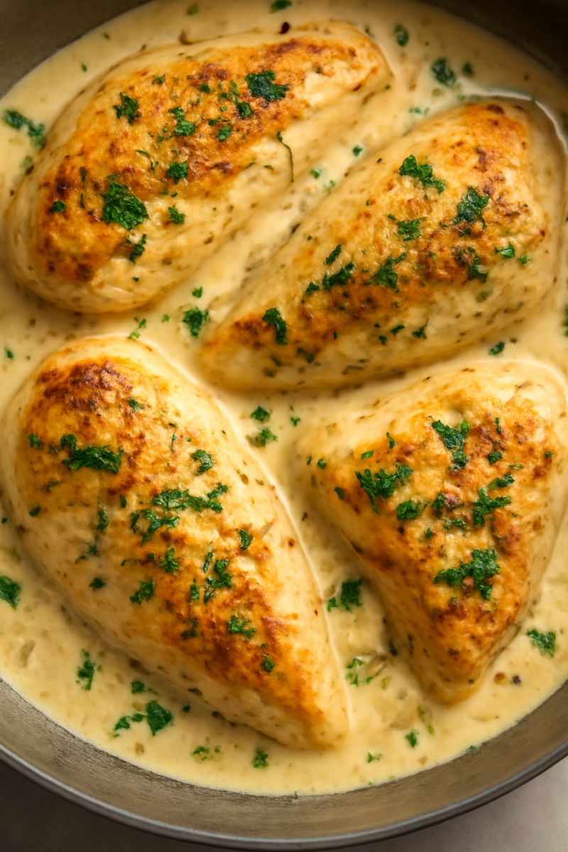 Тушеная куриная грудка в сливочном соусе, нежное блюдо. Пошаговый рецепт