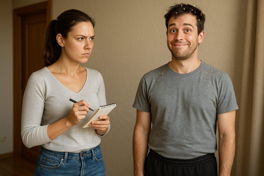 — Так, милый, — Катька стояла посреди нашей квартиры с видом Наполеона перед вторжением в Россию. — Теперь ты женатый человек. А это значит — новые правила. Носки летят в корзину, а не под диван. Трусы — туда же, а не на люстру. И вообще забудь, что пол — это большая полка для вещей!