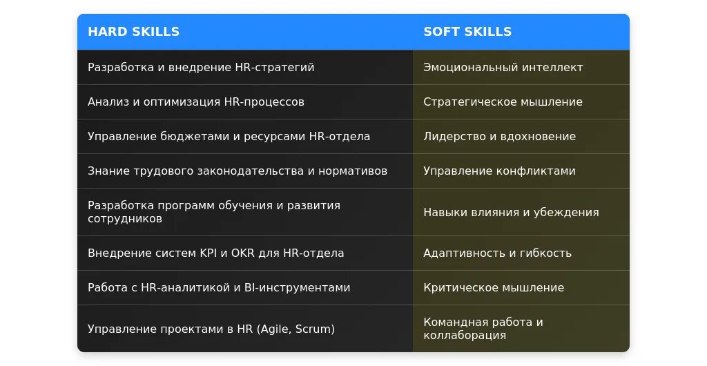 "Навыки управления изменениями, внедрения HR-систем и разработки KPI."