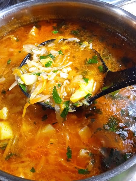 11. Выключаем нагрев, оставляем томиться под крышкой 10 минут. Можно есть но лучше на следующий день, вкус будет насыщеннее а текстура гуще. Капуста отдаст бульону свой вкус а перловка вязкость