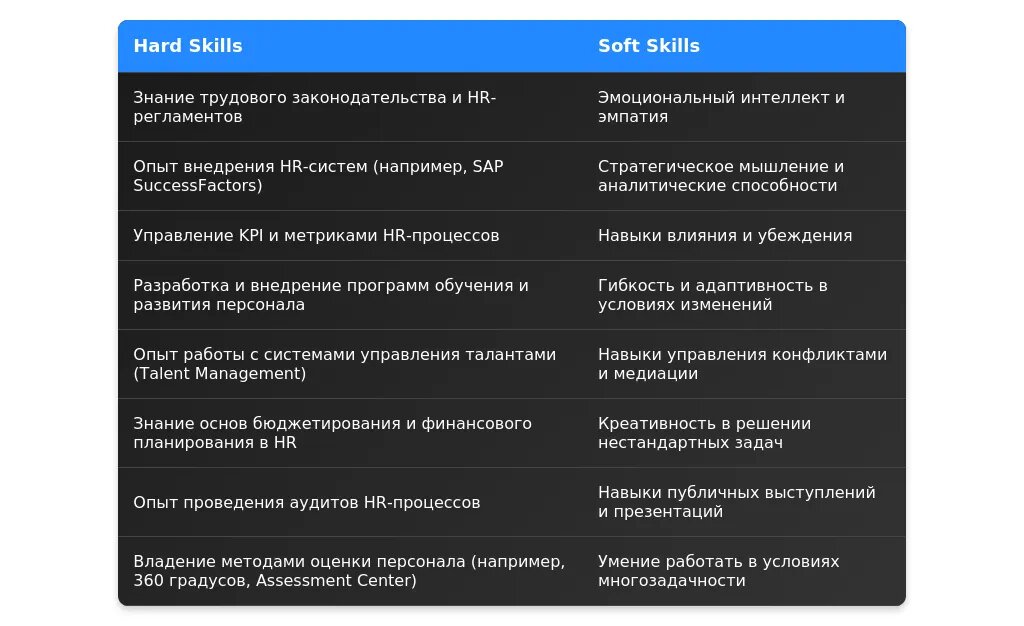 После адаптации: "Управление персоналом, опыт внедрения HR-автоматизации, знание трудового законодательства, навыки работы с SAP SuccessFactors."