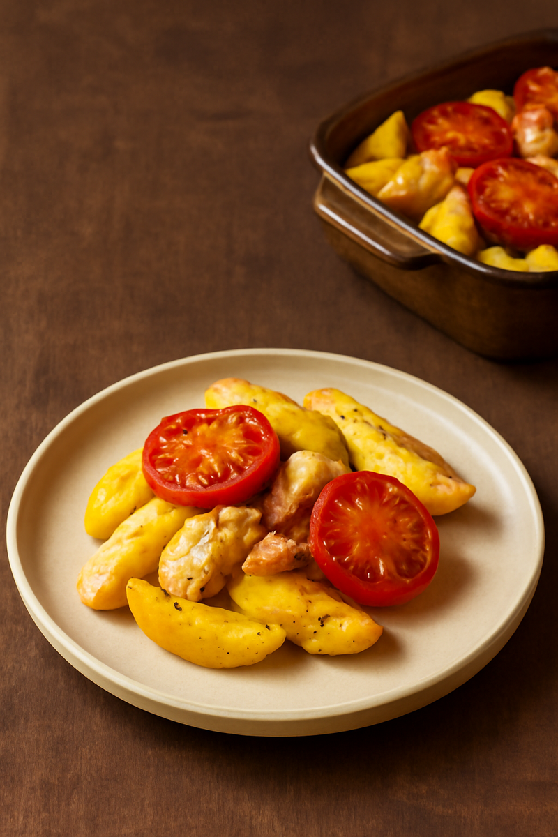 Когда хочется приготовить сытное, но несложное блюдо, которое понравится всей семье, отличным вариантом становится картошка с куриным филе и помидорами, запечённые в духовке. Это классическое сочетание ингредиентов, которое легко готовится и получается очень ароматным и сочным. В этой статье я подробно расскажу, как правильно приготовить такое блюдо, чтобы оно было нежным, вкусным и аппетитным. Картофель — универсальный и доступный продукт, который есть практически в каждом доме. Куринное филе — нежное и диетическое мясо, которое быстро готовится. Помидоры придают блюду свежесть и легкую кислинку, а также добавляют сочности. Запечённое в духовке, всё вместе получается очень гармонично. Такое блюдо подойдёт как для семейного ужина, так и для обеда, а также отлично впишется в меню праздничного стола. Его легко приготовить заранее и разогреть. Выберите глубокую форму для запекания, лучше всего использовать керамическую или стеклянную форму. Смажьте её растительным маслом, чтобы блюдо н