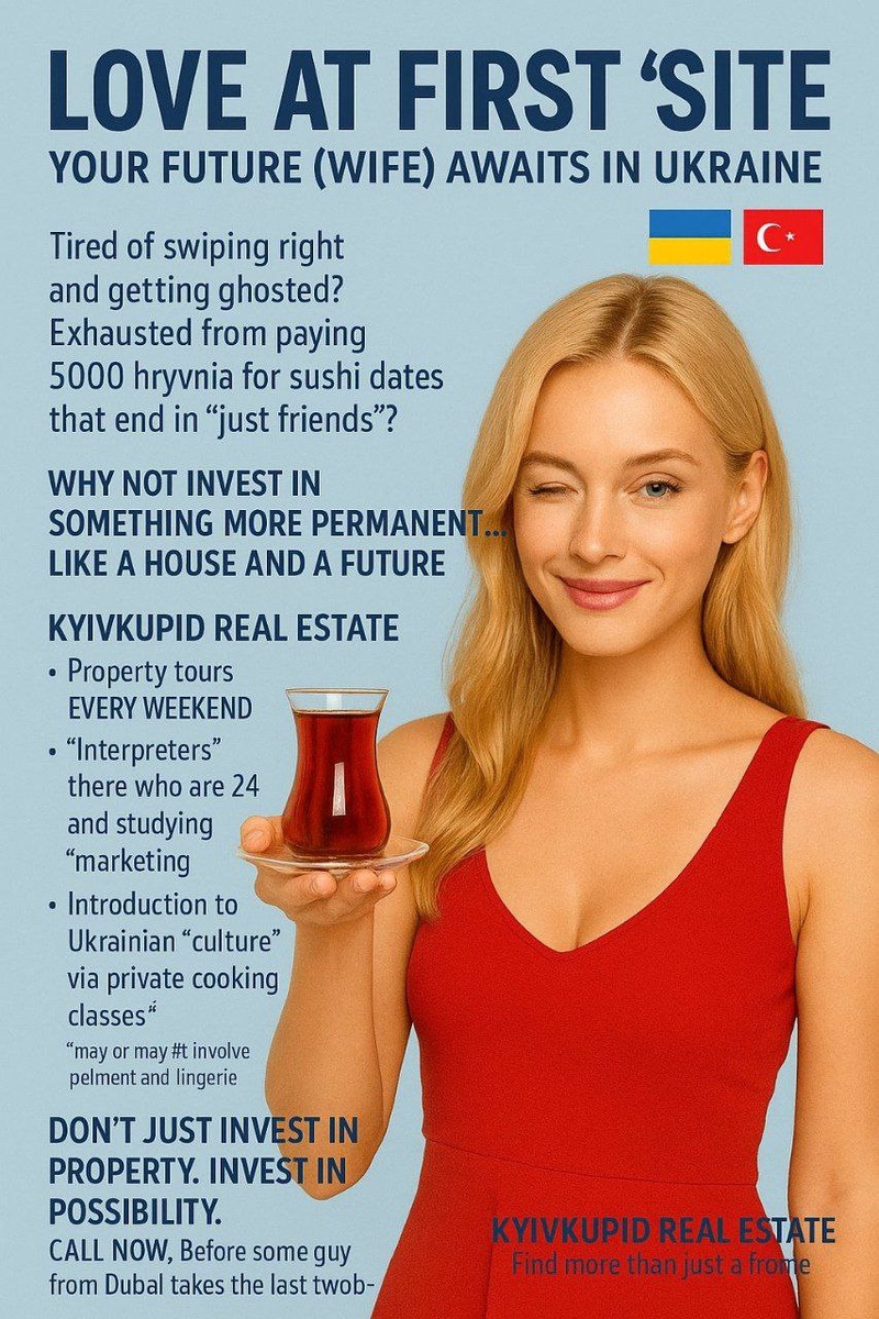 Украинские риелторы из-за проблем с продажами пытаются найти турецких инвесторов в киевские квартиры и обещают жену в подарок. @nemediatema