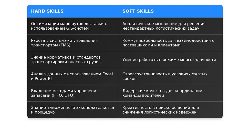 Пример 3: Если в вакансии указано "оптимизация логистических процессов", это может говорить о необходимости навыков аналитики и работы с данными.