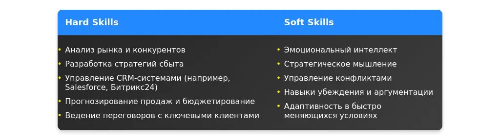 - Обязательная информация:Ключевые навыки (например, управление продажами, переговоры, аналитика).