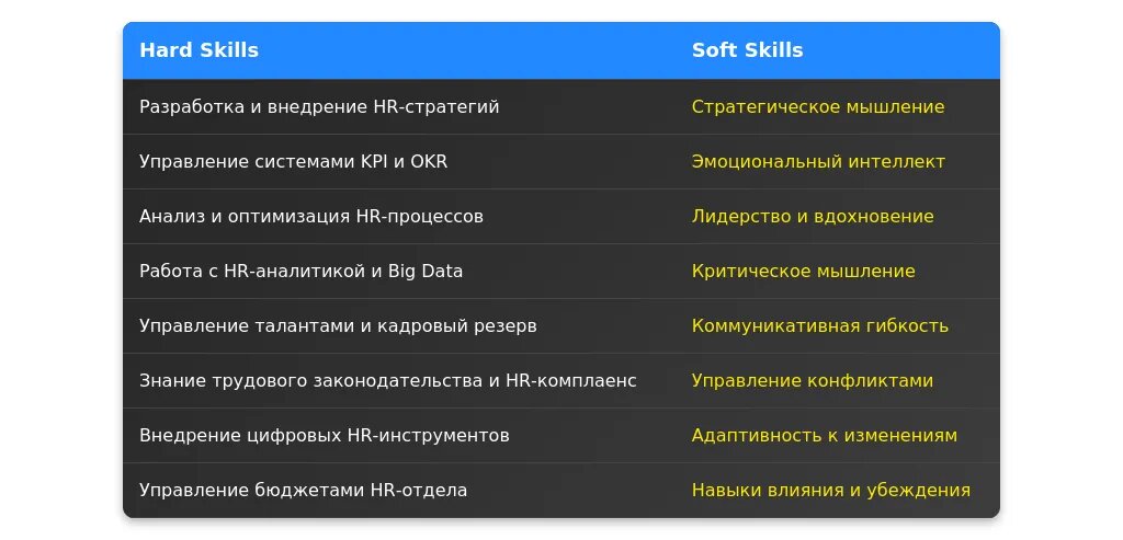 На что делать акцент: Навыки коммуникации, обучение, технические знания (HR-системы, аналитика).