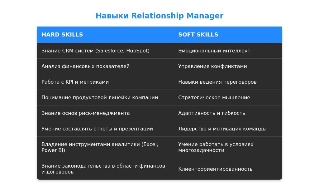 - Фото: Профессиональное фото в деловом стиле (не обязательно, но рекомендуется для профессии Relationship Manager).