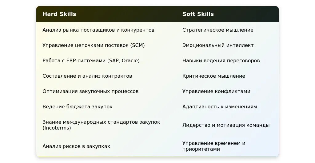 - актуальные требования работодателей и перечень ключевых навыков в закупках;