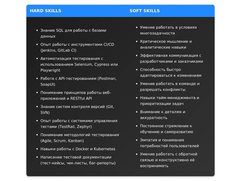 - Указание устаревших навыков (например, ручное тестирование без упоминания автоматизации).