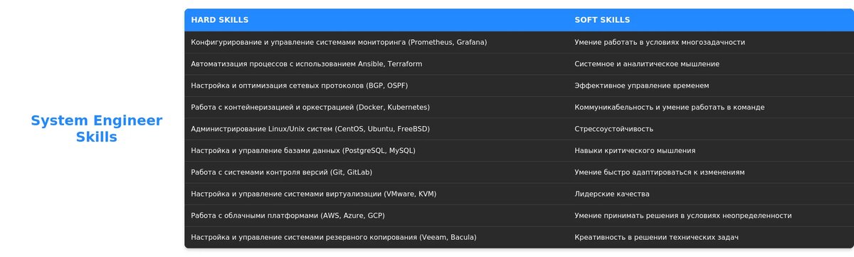 Анализ требований вакансии для профессии "System Engineer"