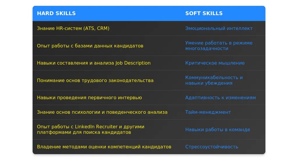 ✅ Коммуникабельность: эффективное взаимодействие с кандидатами и HR-командой.