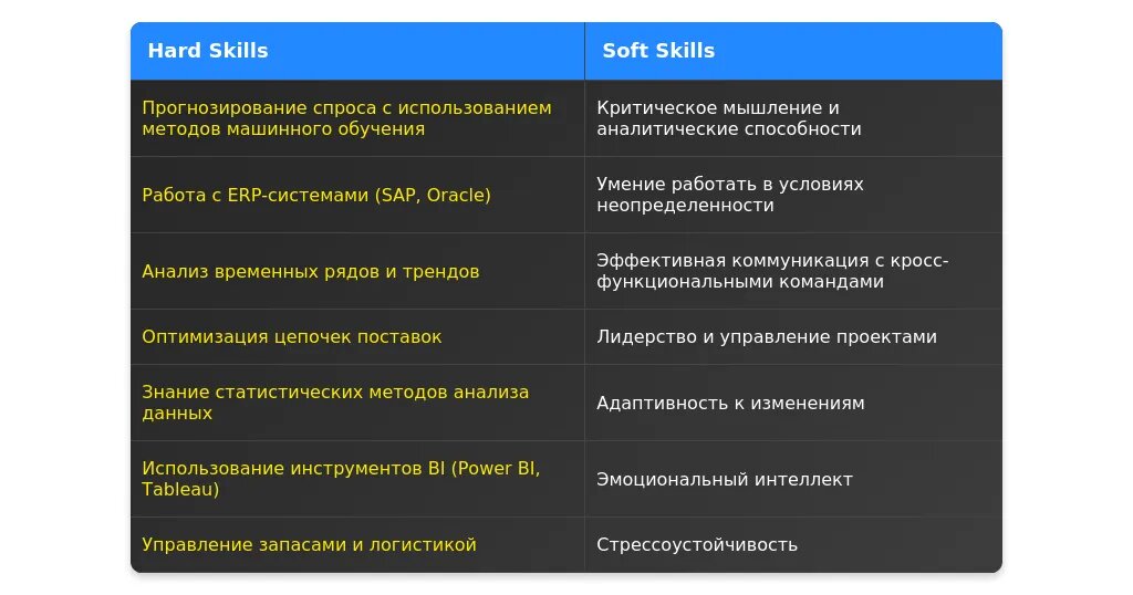 - Обязательная информация:Ключевые навыки, связанные с планированием спроса.