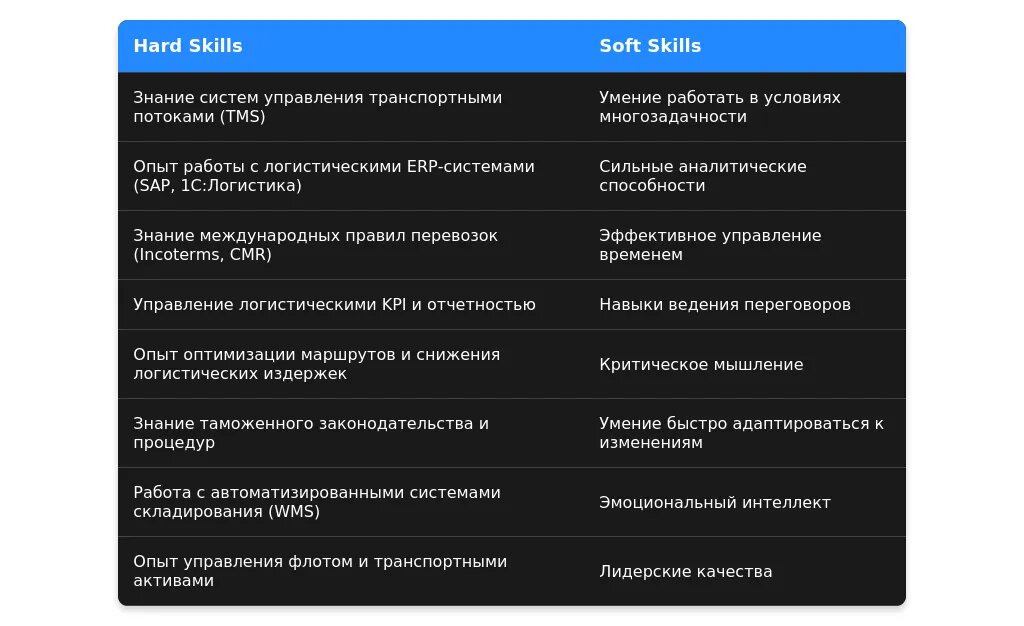 Анализ требований вакансии для профессии "менеджер отдела транспортной логистики"