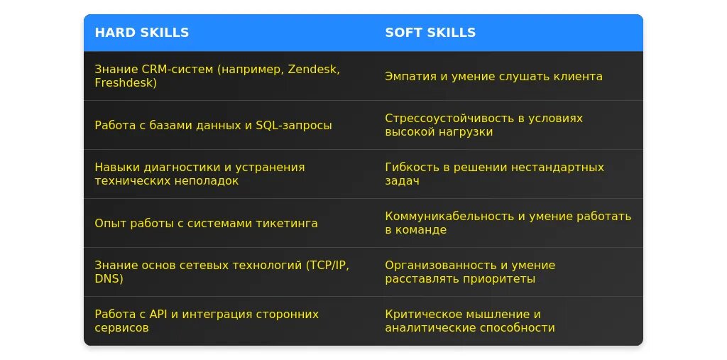 - Подчеркните качества, важные для поддержки: стрессоустойчивость, внимательность, умение работать в команде.