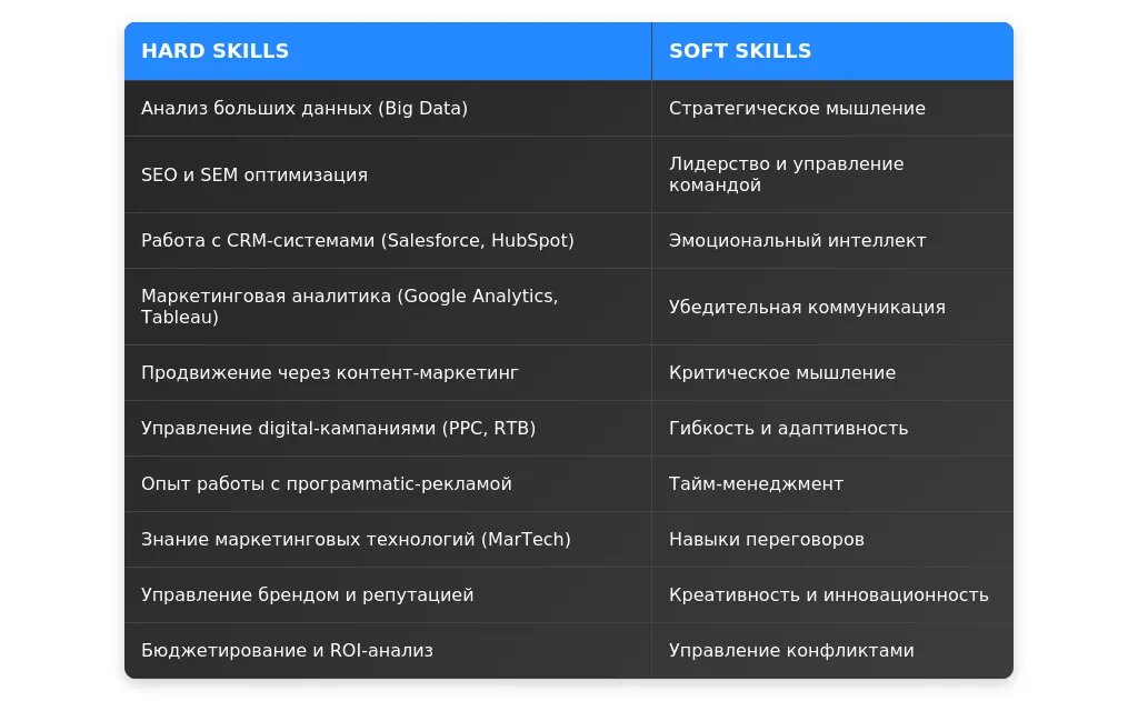 Анализ требований вакансии для профессии "заместитель директора по маркетингу и рекламе"