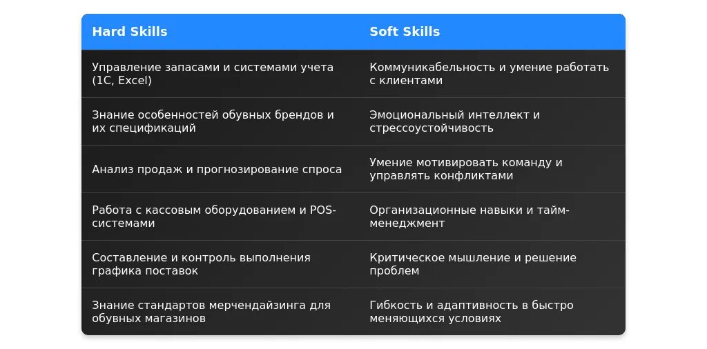 При анализе вакансии для профессии "администратор магазина обуви" важно выделить ключевые требования, которые работодатель указывает в описании. В первую очередь обращайте внимание на обязательные требования, такие как опыт работы в розничной торговле, знание кассового оборудования, навыки управления персоналом и умение работать с клиентами. Желательные требования, например, знание иностранных языков или опыт работы с CRM-системами, также важны, но их отсутствие не всегда является критичным.