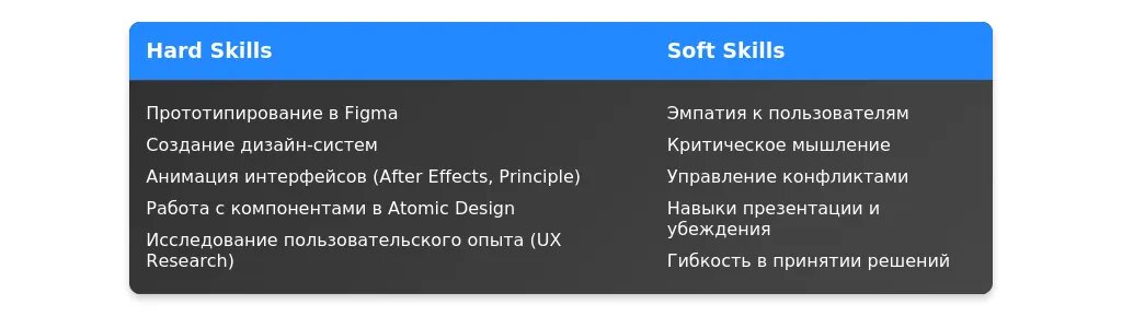 После: "Figma (опыт создания дизайн-систем), UX/UI дизайн, проведение юзабилити-тестов."
