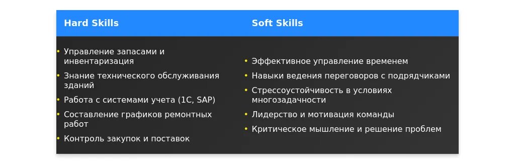 - Технические: работа с CRM, знание ГОСТов, учет оборудования