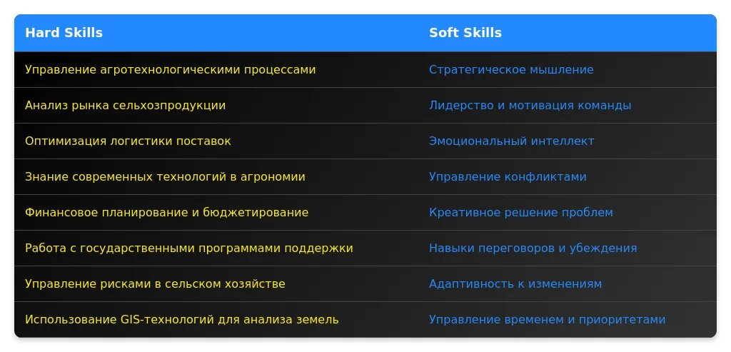 После адаптации: "Знание современных агротехнологий, опыт внедрения систем автоматизации, управление бюджетом до 1 млрд рублей."