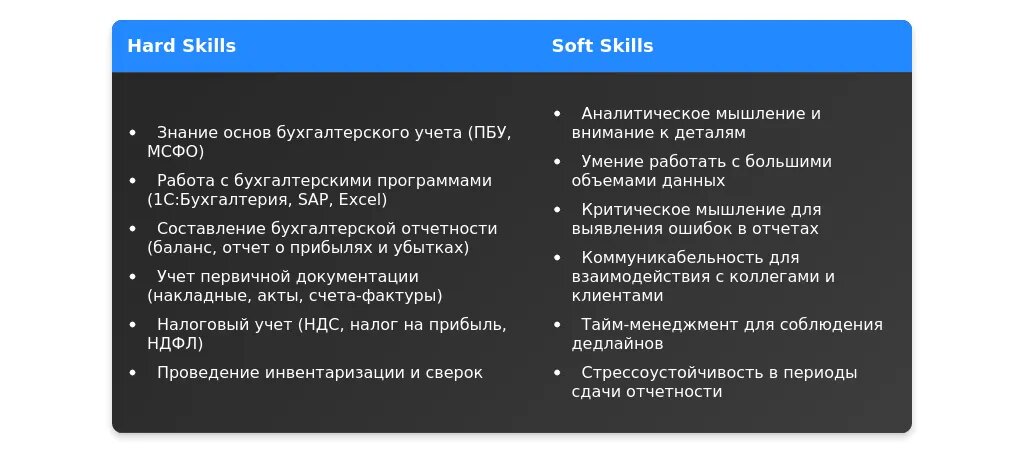 - Ключевые навыки (например, знание основ бухгалтерского учета).