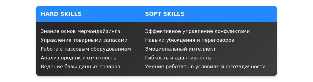После: "Знание 1С:Торговля, опыт работы с кассовым оборудованием, высокий уровень обслуживания клиентов."