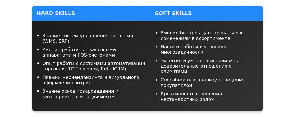 - Обслуживание: "Обеспечиваю высокий уровень сервиса", "Работаю с кассой и CRM-системой".