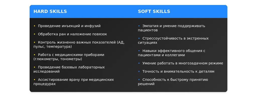 После: "Работа с медицинским оборудованием, знание стандартов оказания медицинской помощи, навыки общения с пациентами."