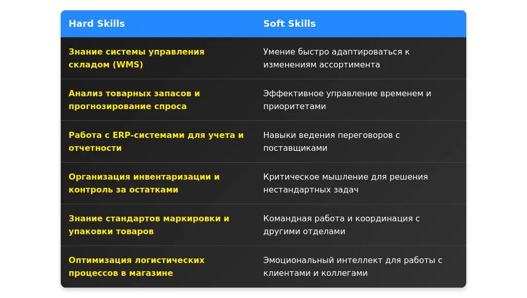 При анализе вакансии важно выделить ключевые требования, которые работодатель считает обязательными. Это могут быть навыки работы с товарными базами, знание стандартов учета, умение вести переговоры с поставщиками. Обратите внимание на формулировки: если требование указано как "обязательно", это ключевой критерий. Желательные требования, такие как знание конкретных программ или опыт в определенной сфере, также важны, но их отсутствие не всегда критично.