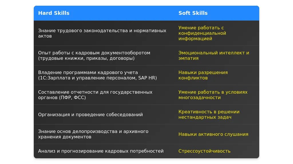 - Креативность (не всегда уместна в кадровой работе).