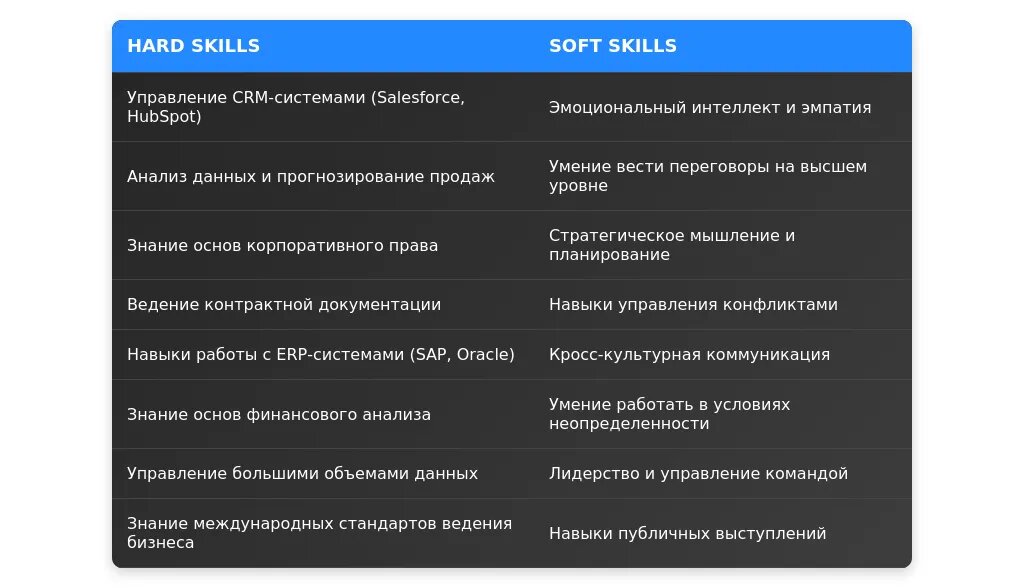 "Стратегические переговоры, управление ключевыми клиентами, знание CRM-систем."