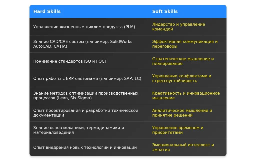 Анализ требований вакансии для профессии "руководитель конструкторского отдела"