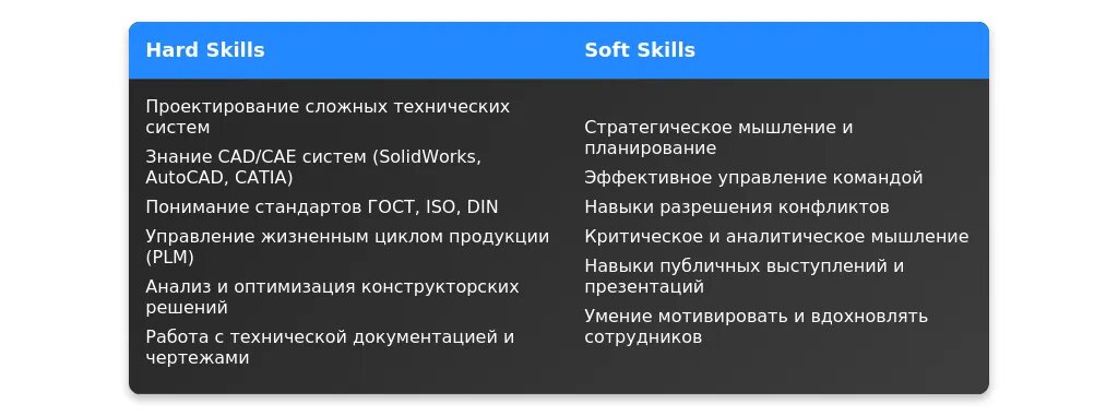 Пример 2: "Знание CAD-систем (AutoCAD, SolidWorks)". Обязательное требование — владение инструментами, а скрытое — умение быстро осваивать новые технологии.