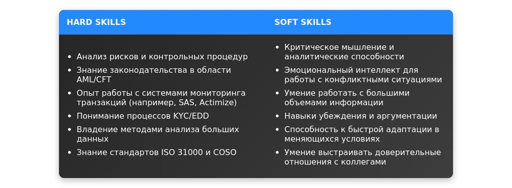 Анализ требований вакансии для профессии "сотрудник службы внутреннего контроля"