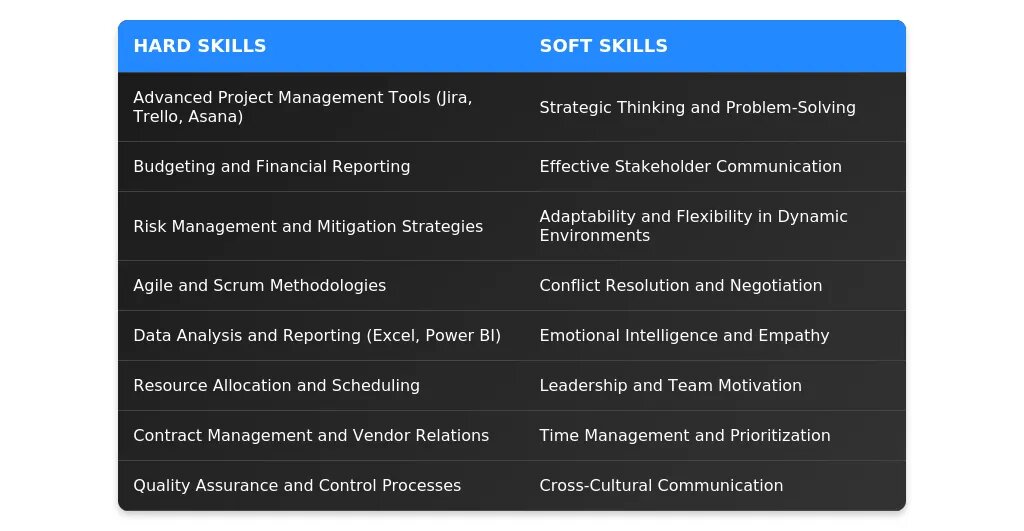 Используйте ключевые слова, которые рекрутеры ищут в резюме: project coordination, team management, budget planning, stakeholder communication, agile, scrum, risk management.
