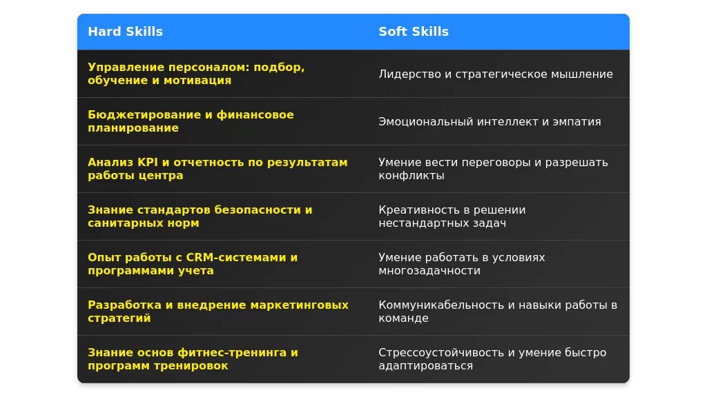 Анализ вакансий для управляющего фитнес-центром