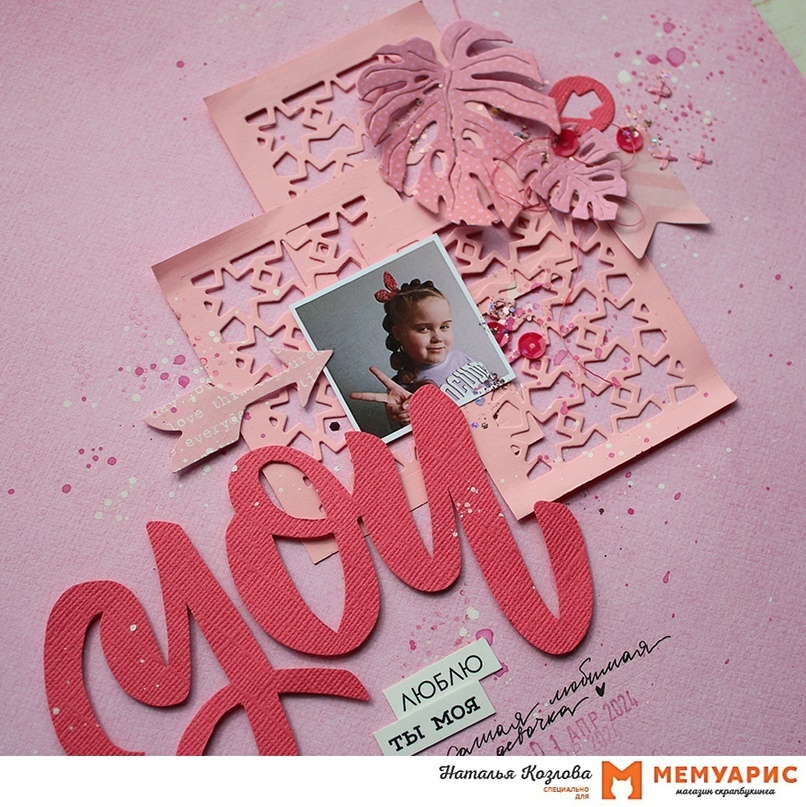 Привет, привет! Тут Наташа и мой лифтинг работы Марины Полянской. Я фанат Марины! )) Её яркие и сочные работы невероятно круты! Белый тоже часто встречается в качестве базы. Но это белоснежное монохромное великолепие просто что-то невероятное! Эту то страничку я и решила лифтить )) Решила повторить расположение элементов, большой заголовок и конечно монохром. Только цвет взяла розовый )) В этой страничке несколько его различных оттенков )) В основе лист от ScrapМира, а вырубка и заголовок из кардстока. Воспользовалась ножами от Mimi cut «Марокканский чай», «Домашние джунгли» и «Когда расцветает земля». А также нож «Монстера резная» от Fantasy и «Фишки» от Hobby-time. Тему ниток тоже не забыла, добавила лишь несколько вышитых крестиков. Заголовок дополнила парой фраз из "Говорилки картонной» от PaperRus. Фон странички немного усложнила с помощью штампа «Многоточие» от Agiart. Добавила также пайетки, блёстки и брызги сухой краской цвета «Фуксия» от Fractal paint. Ждём и ваши работы по ли