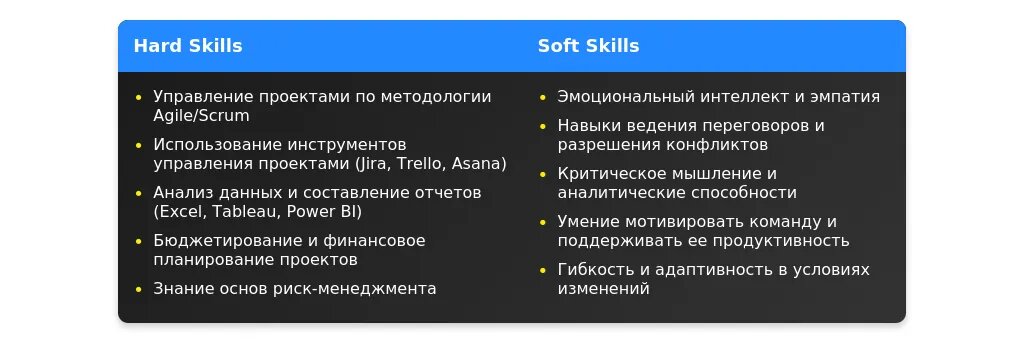- Акцент на навыках: Базовые навыки управления проектами и soft skills.