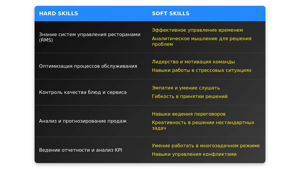 Анализ требований вакансии для профессии "менеджер зала ресторана"