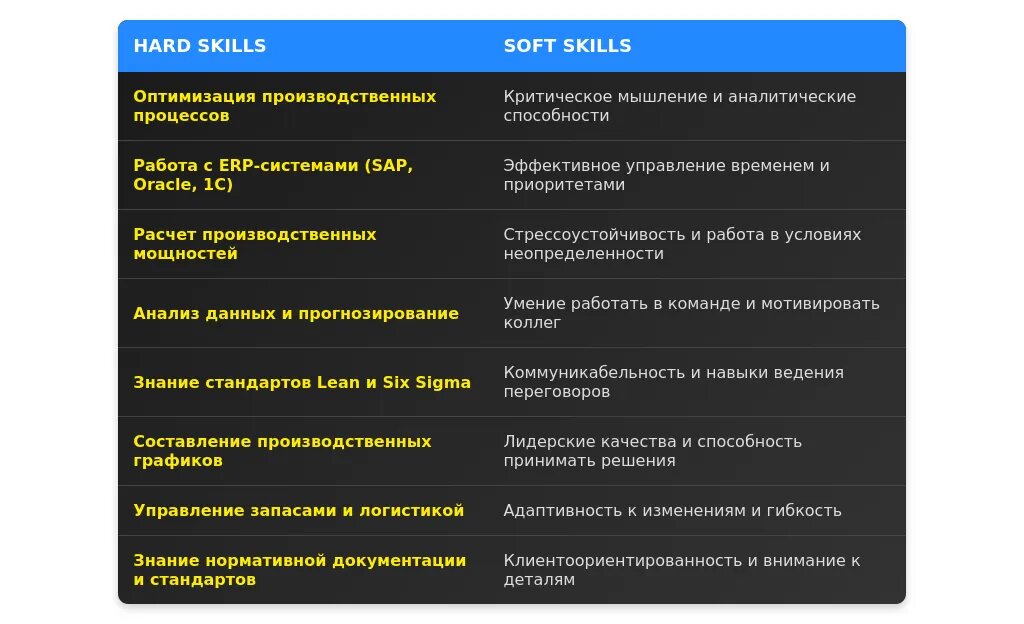 - Ключевые навыки, связанные с планированием производства.