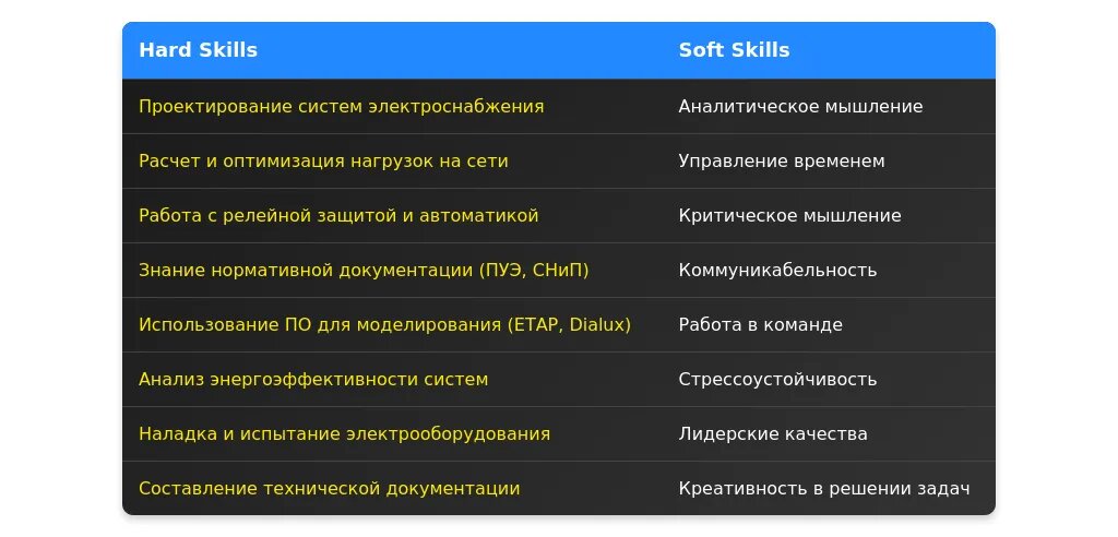 Анализ требований вакансии для профессии "инженер по электроснабжению"