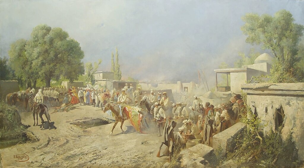 …Нам придётся пропустить целый ряд событий – отметим лишь: русские продвигались небольшими отрядами (с оглядкой на вездесущую Англию) – потому вторжение было каким-то полуофициальным – и решающее значение имела инициатива командиров. (А проще – пресловутый дух авантюризма). Не утративший его Михаил Черняев в сентябре 1864-го неожиданным наскоком возьмёт Чимкент (который брать никто не собирался!) – у полковника было около тысячи человек против десяти тысяч; находчивые русские проникнут в неприступный город по водопроводным трубам...