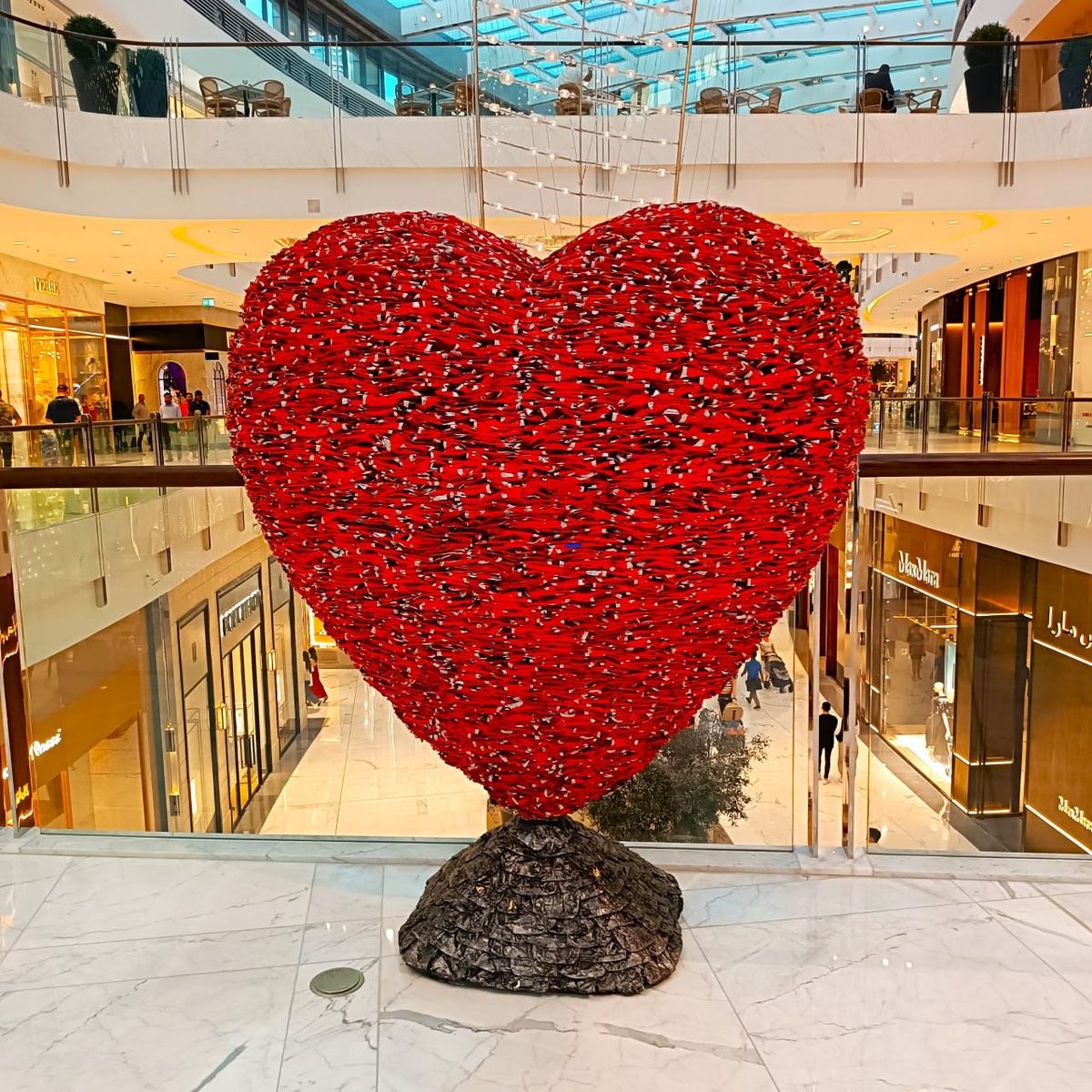 Арт-объект «Сердце» Дубай- мол Этот сердечко стоит в крупнейшем молле Дубая и привлекает внимание проходящих не только совей красотой. Оно сделано из сдавленных железных банок Вот только не написано, с какой целью сделали это сердце. То ли 1 призыв любить, беречь природу и собирать банки, 2 любить всем сердцем Кока-колу? Вам какой вариант кажется ближе к истине? #путешествияблондинки #дубай