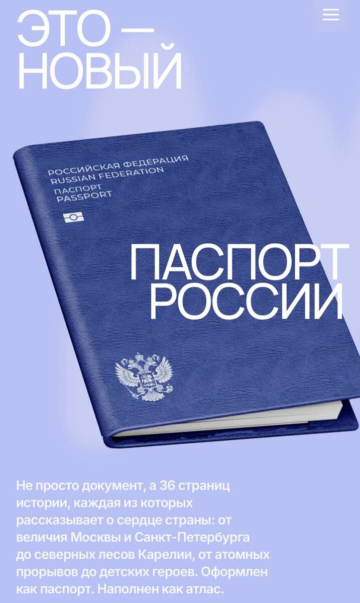 😣 Криво и наспех Я давно говорил о том, что стоит «пересобрать» наш загранпаспорт — сделать его не только функциональным, то и имиджевым символом. И это единственная часть, с которой я согласен с авторами этого проекта. Дальше — кромешный ад и солянка из смыслов. Какие возникают вопросы: 1. Зачем перекрасили паспорт с нашего восхитительного бордового в синий? Синие паспорта у американцев, канадцев…Нам это зачем? 2. Герб страны уменьшили до уничижительного размера в погоне за типографикой и графического баланса (как я предполагаю). То есть у остальных стран герб на весь корешок, а у нас формат отметки?! Просто волосы дыбом. 3. 36 страниц, в которых намешаны достижения страны и отдельные национальные символы регионов. А как вы объясните республике Башкортостан, что их субъекта нет на страницах, а республика Татарстан есть? А где Донбасс? Крым? Ощущение, что автор делал концепт на основе логики: «Что вспомнил, то перенес». … Можно продолжать ещё долго разбирать этот продукт, но вы