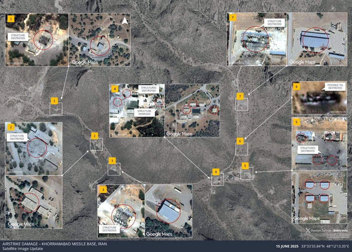На спутниковом снимке видны обширные разрушения также на военной базе в Хорремабаде.